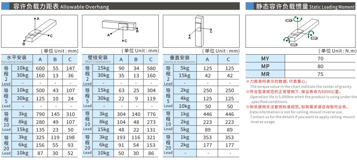 容许负载力距表