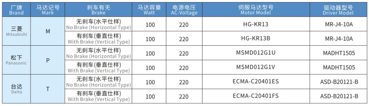 搭配伺服马达一览表